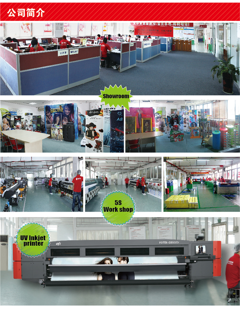 設(shè)備情況:有進(jìn)口的本羅蘭高精度寫真噴繪機(jī)36臺(tái);戶外高速噴繪機(jī)日本精工機(jī)12臺(tái);EPSON原裝墨高精度噴繪機(jī)8臺(tái);美國威特UV機(jī)3臺(tái);OCE平板噴繪機(jī)2臺(tái);羅蘭熱轉(zhuǎn)印數(shù)碼噴繪機(jī)5臺(tái);自動(dòng)化后加工系列設(shè)備12臺(tái)。