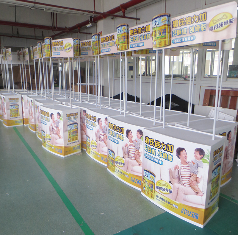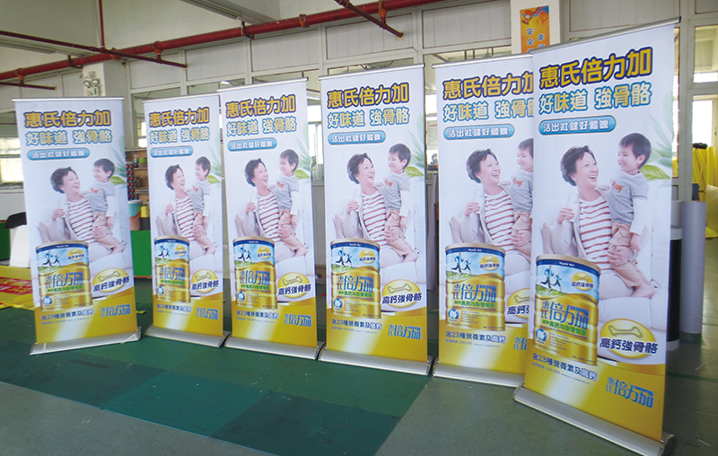 香港惠氏集團是我司的戰略合作伙伴,我司主要給惠氏奶粉系列產品生產廣告用促銷臺和易拉寶,促銷臺包括吸塑促銷臺,全鋁合金促銷臺。易拉寶主要是寬底豪華易拉寶,易拉寶畫面采用專業級PVC膠片,平整,不卷邊。