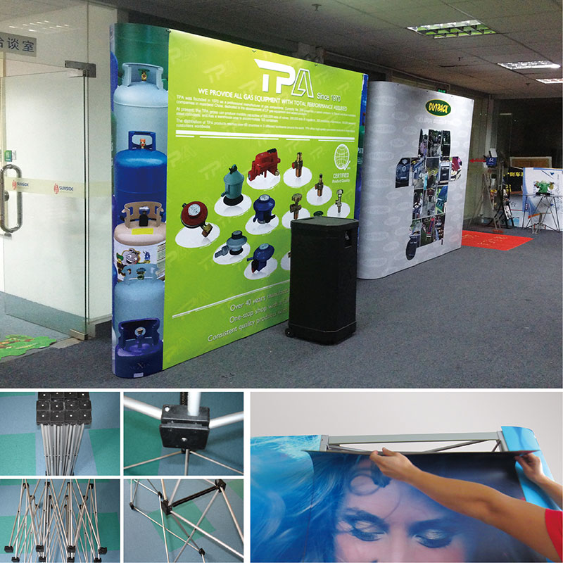 深圳生彩廣告,專業拉網展架工廠。拉網展架由管件和連接件組成,可以伸縮,方便攜帶;