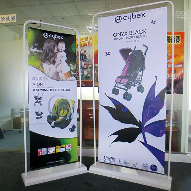 門形展架放置平穩,占空間體積小,畫面可以做單面或雙面廣告。門形展架