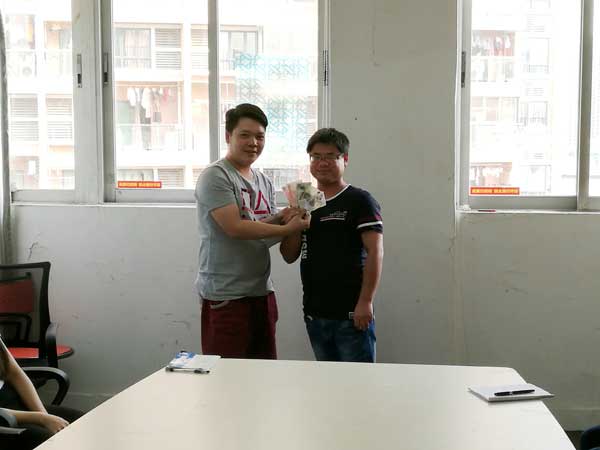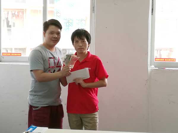 7月業績PK大賽冠軍,5000元大獎得主柳家德同事(右)